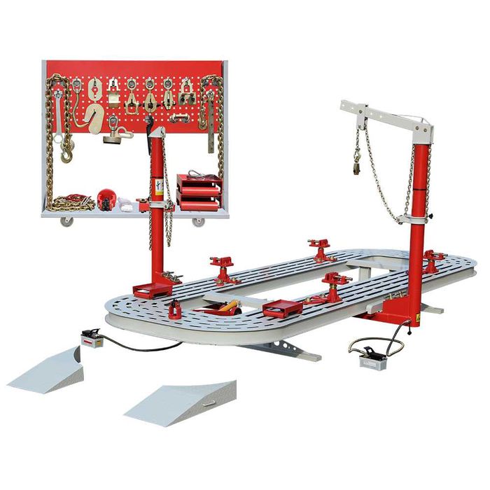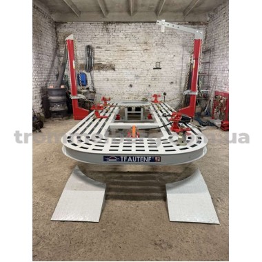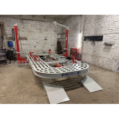 Платформенный стапель с односторонним гидравлическим подъемником для восстановления геометрии кузова автомобилей, имеющих повреждения любой сложности.