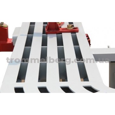 Платформа стапеля имеет продольные пазы, что позволяет устанавливать 4 кузовных зажима в любом месте платформы. Более того, наличие пазов позволяет полностью использовать поверхность платформы в процессе правки кузова.