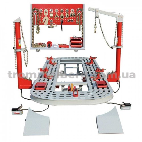 Две силовые стойки (башни) с гидравлическим приводом и тяговым усилием по 10 тонн свободно перемещаются вокруг платформы в пределах 360°, что делает возможным приложение тягового усилия к любой точке кузова автомобиля. Высота приложения тягового усилия легко изменяется посредством изменения положения хомута со шкивом.